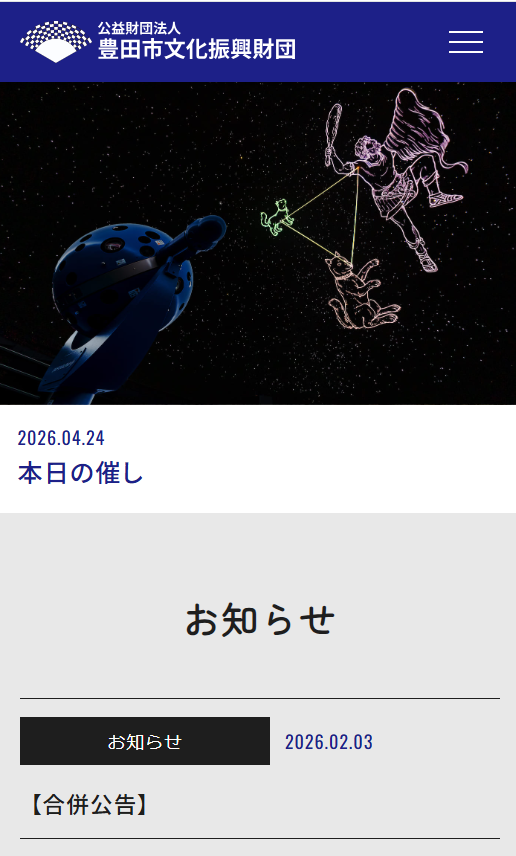 Websiteショップ・施設 ショップ・施設 大和社会福祉事業振興会(障害者施設) Release 2024年10月 URL https://shougai.daiwa.or.jp/ ショップ・施設 太啓建設LIXILリフォームショップ Release 2022年10月 URL https://www.taikei-azmi.jp/ ショップ・施設 アップドゥ 津店 Release 2025年7月 URL https://sportscenter.jp/tsu/ ショップ・施設 ストロベリーパークみふね Release 2026年2月 URL https://strawberry-park-mifune.com/ ショップ・施設 大和社会福祉事業振興会(保育サイト) Release 2024年9月 URL https://hoiku.daiwa.or.jp/ ショップ・施設 豊田市文化振興財団 Release 2024年3月 URL https://cul-toyota.or.jp/ ショップ・施設 TTOゴルフクラブ Release 2024年12月 URL https://ttogolf-academy.luminous-golf.jp/ ショップ・施設 株式会社 ひさご Release 2025年2月 URL https://hisago.skr.jp/ ショップ・施設 豊田スイミングスクール Release 2024年5月 URL https://toyotass.com/ ショップ・施設 みふねカフェ Release 2023年02月 URL https://mifune-cafe.com/